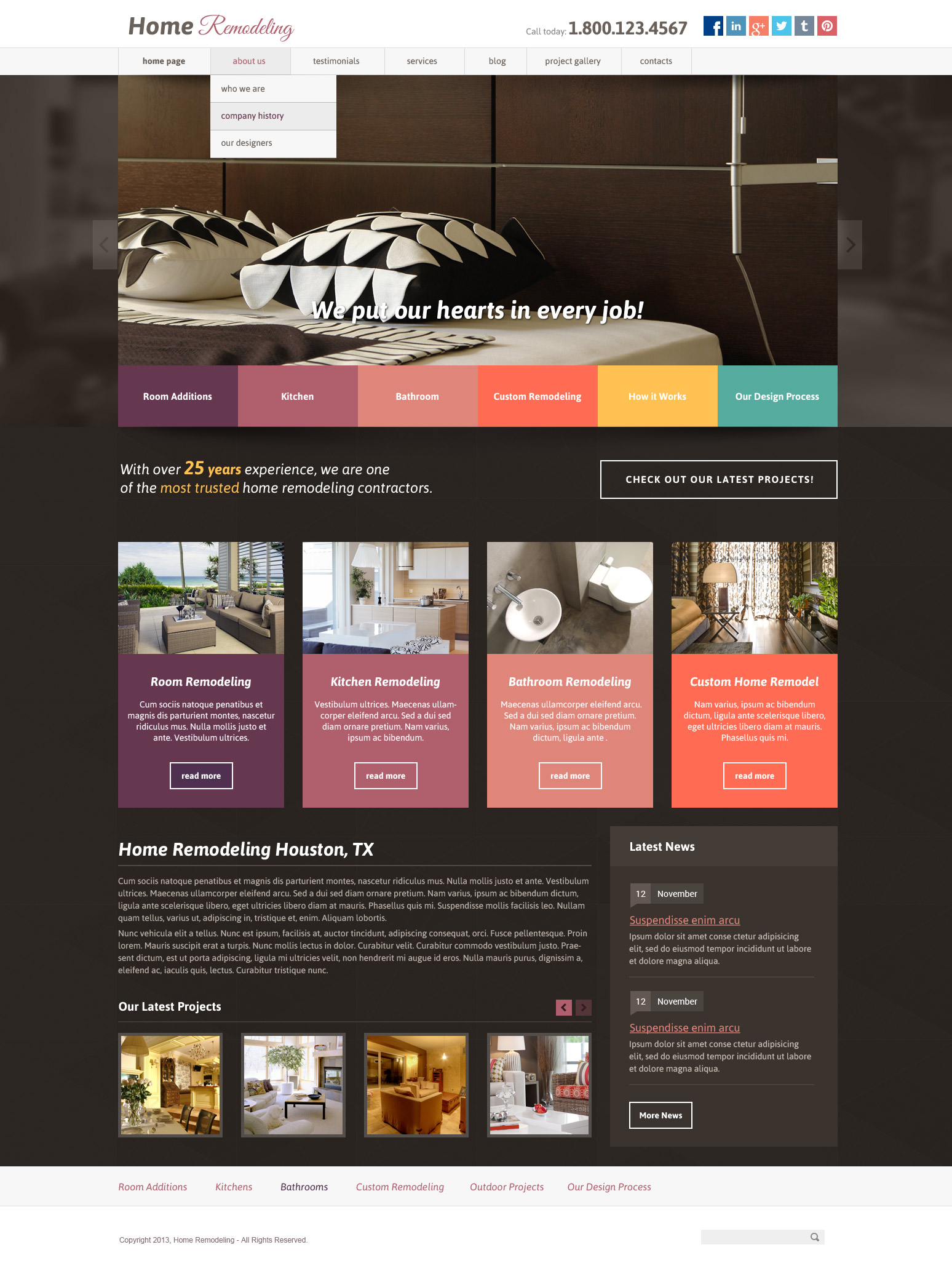 This Full responsive Joomla template is recommended for the company who has Room renovation, Home Remodelling, Interior design Business.