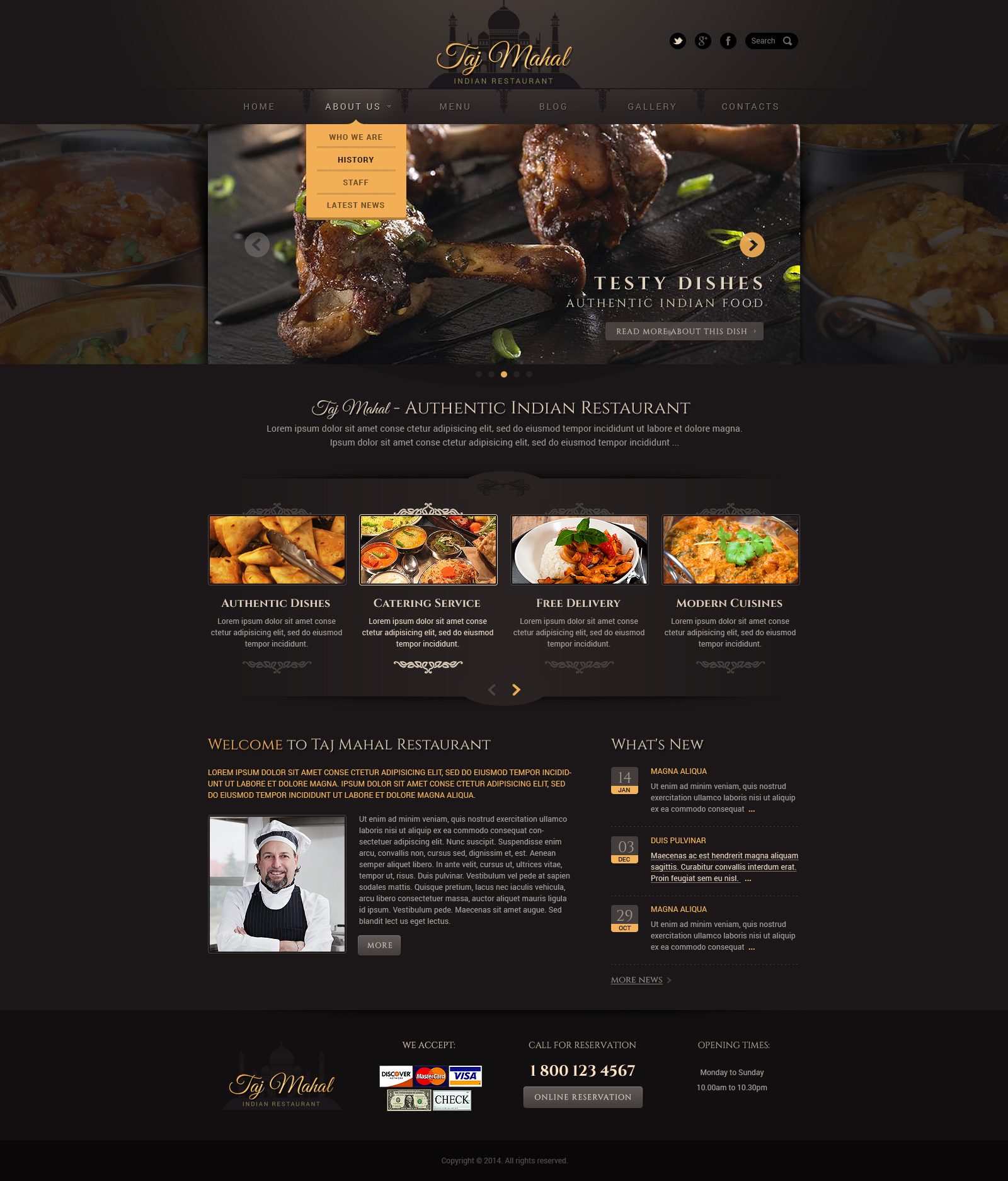Introducing Indian food responsive theme. If you are going to dispatch your restaurant or redesigning your website, here is best restaurant WordPress template that we have for you. An exquisite format starting with 6 general page information which highlights particular zone of your site. After that comes our exquisite slideshow which has as an essential focus to pass on assorted edges and inspiration of your restaurant with an Indian food shading establishment that keep your gathering of spectators aware of the sincerity of your business.