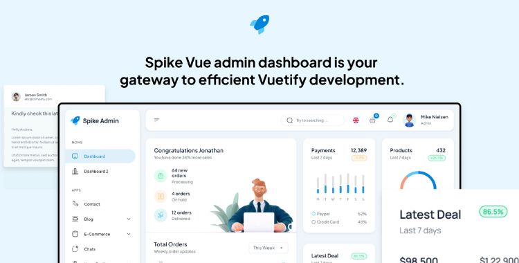 It supports customizable layouts, multiple color schemes, and responsive design, ensuring device compatibility. Additionally, Spike includes easy-to-integrate plugins, detailed documentation, and ongoing support, making it a valuable tool for beginners and experienced developers.